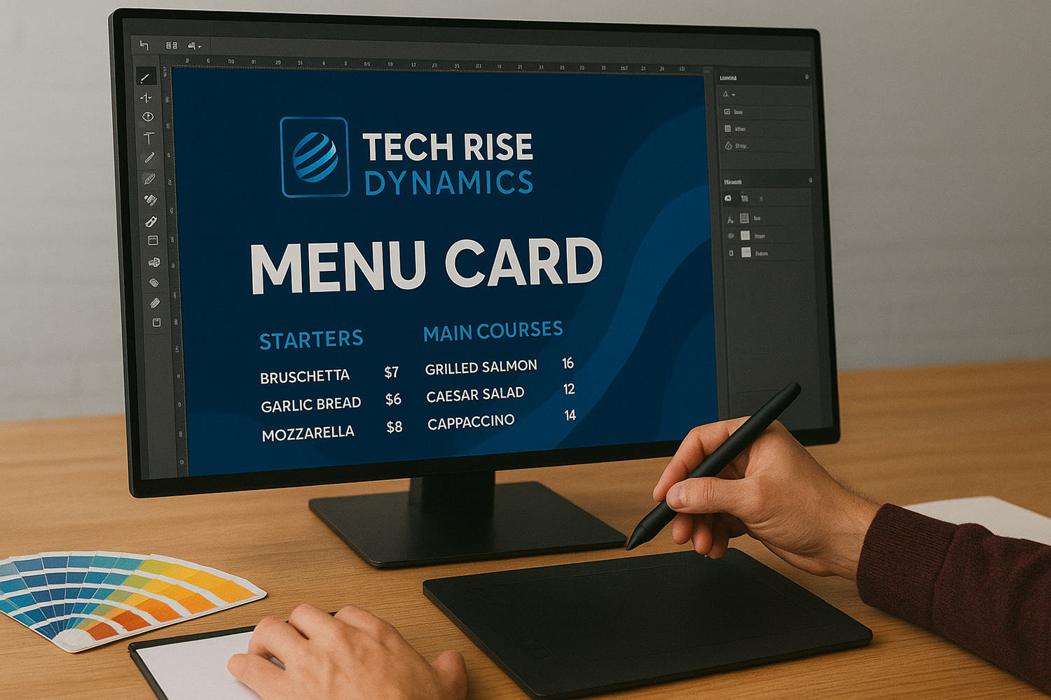 At Tech Rise Dynamics, we design stylish, functional, and brand-focused Menu Cards that elevate the dining experience and showcase the true personality of your business. A menu is more than a list of dishes – it’s a powerful branding and sales tool that influences customer choices, builds appetite, and leaves a lasting impression. Whether you own a restaurant, café, bakery, bar, or catering service, we craft menu designs that are visually appealing, easy to navigate, and perfectly aligned with your brand identity.